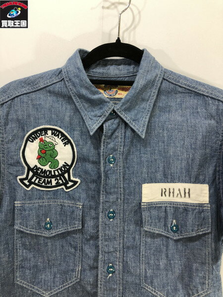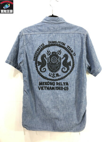 ■商品名:REAL McCOY’S/ワークワッペン付き半袖シャツ/シャンブレー/ リアルマッコイズ■状態:着用感・毛羽立ち・擦れが見られます。